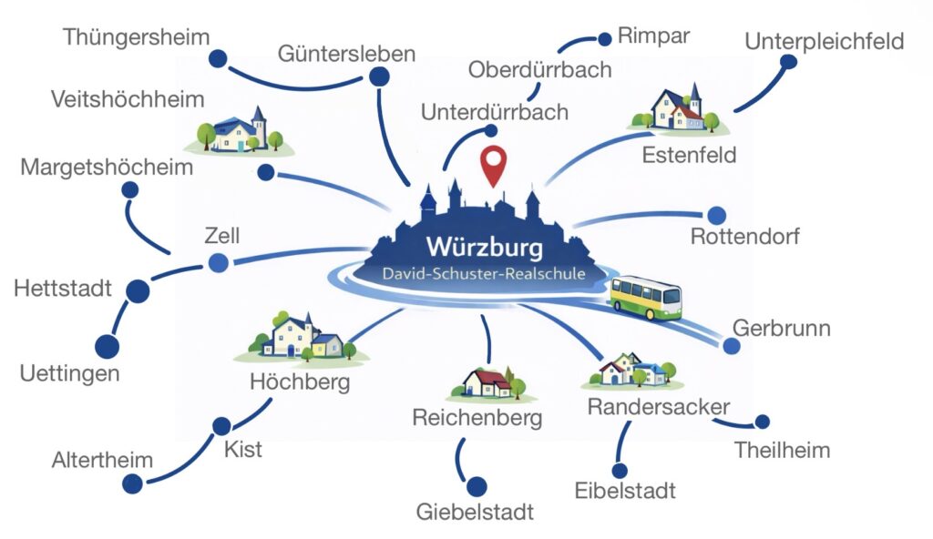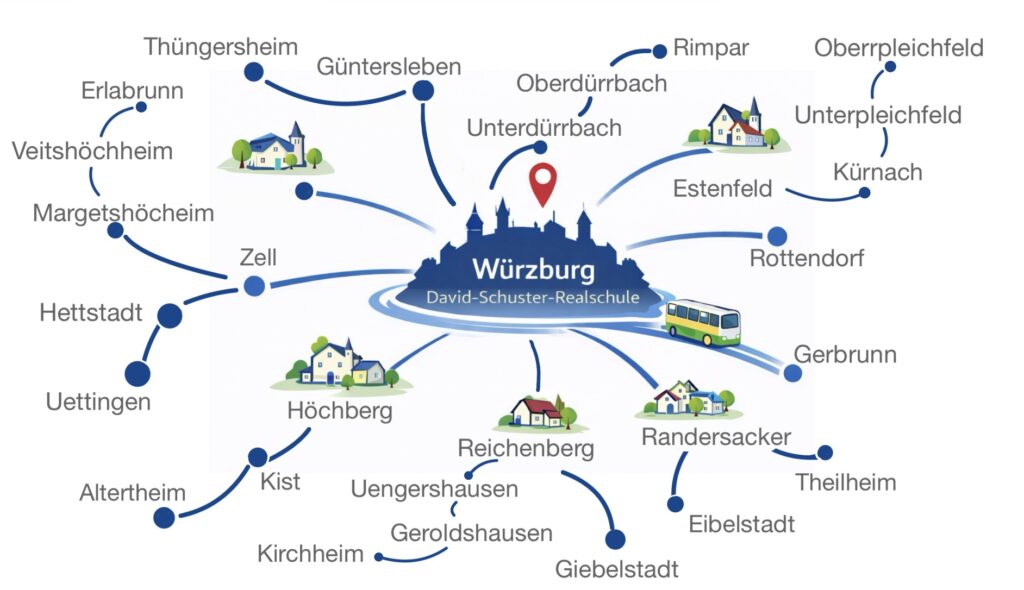 Sie erreichen unsere Schule im Herzen Würzburgs bequem und einfach mit Bus und Bahn.
